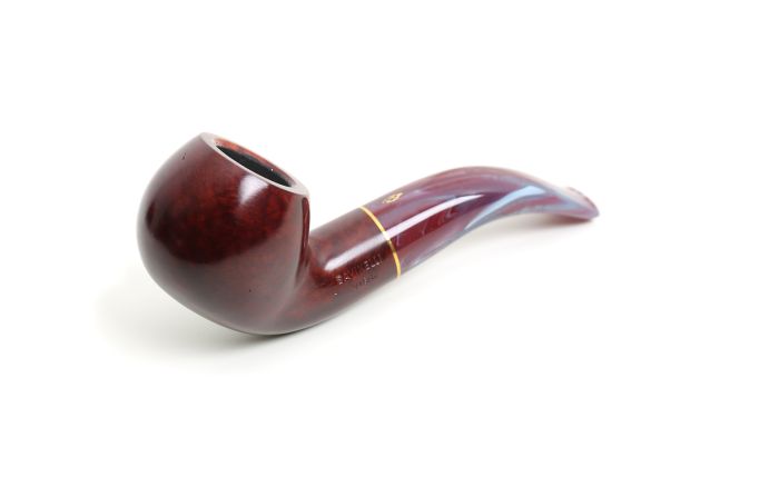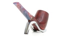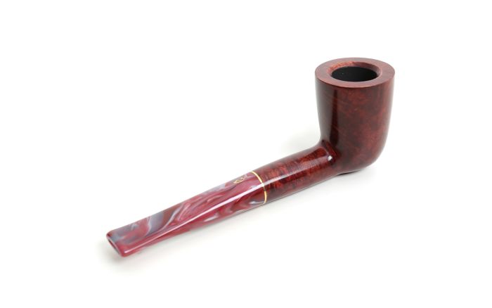 The Vigna series, available in smooth burgundy and rusticated burgundy finishing, recalls the colors of Italian red wine. Its particular acrylic stem is made up of a nuance of different shades ranging from red/burgundy to dark purple. The pipe is enriched by a thin gold color band, which gives it elegance and class. The series is offered in seven different models. Model 141 KS has a thick conical shank a little bit shorter than standard Billiards. Its dimensions give the pipe a great solidity.
